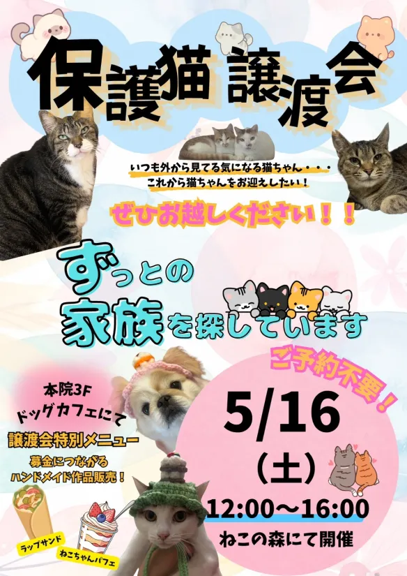5/16(土) 12時~16時 ねこの森にて保護猫譲渡会開催します✨